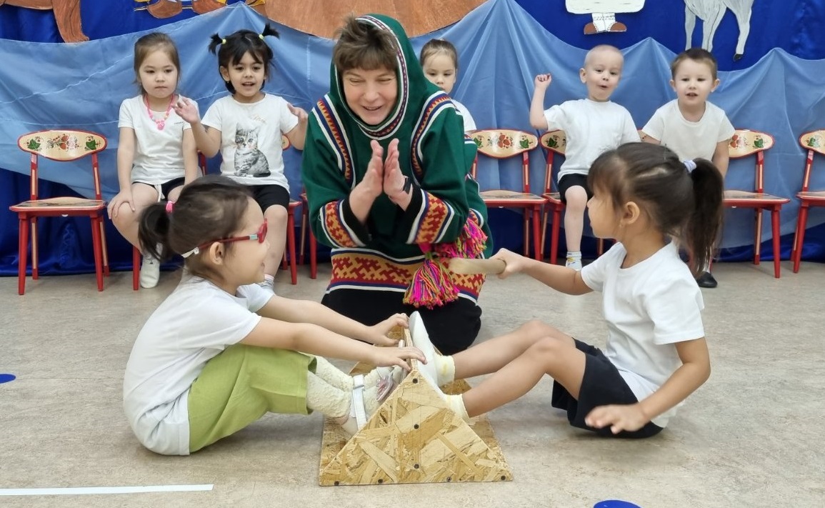 В средних группах ребята отгадывали загадки о северных ягодах, животных, исполнили песню «Салехард», сыграли в игру «Рыбалка», повеселились в подвижной игре «Оленята в тундре жили».