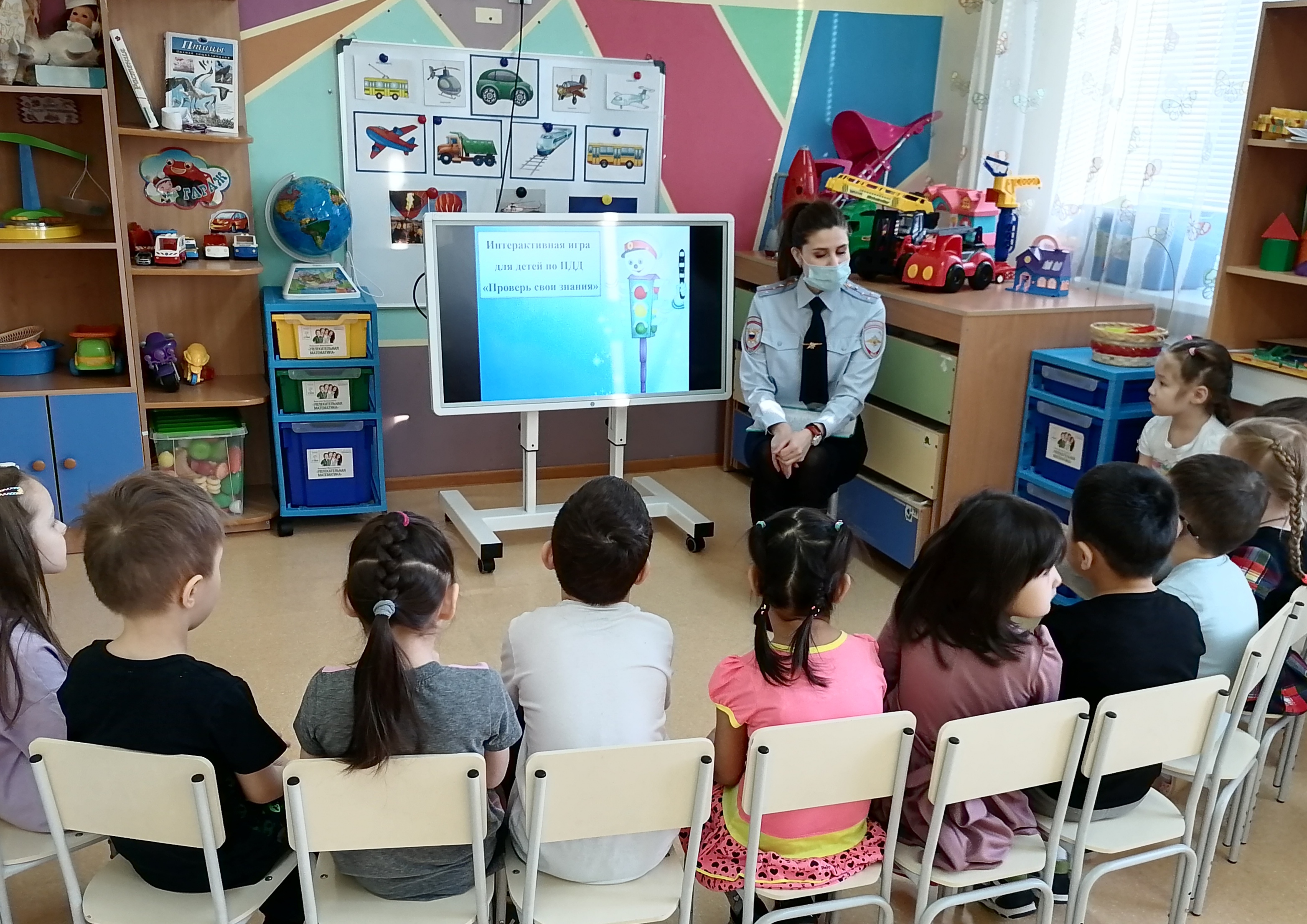 Дети с увлечением отвечали на вопросы викторины по правилам дорожного движения, играли в подвижные игры, интересовались, как стать инспектором, что он должен знать и уметь? Расставаясь, пригласили Марию Юрьевну приходить к ним в гости чаще.