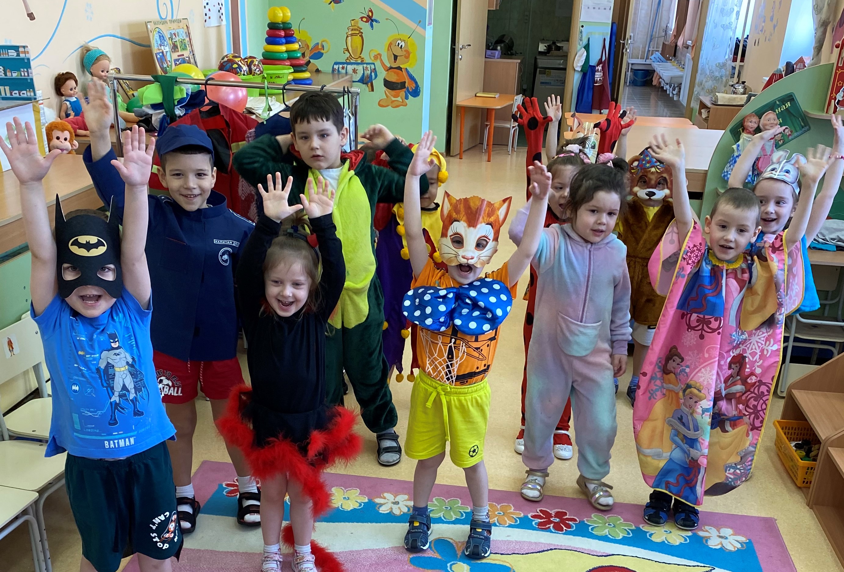 Утром ребята пришли в разных костюмах. Целый день прошел под девизом «Наша группа лучше всех, здесь звучит веселый смех!». А в завершение прошло развлечение с веселыми подвижными играми. Дети и взрослые получили заряд бодрости и оптимизма.