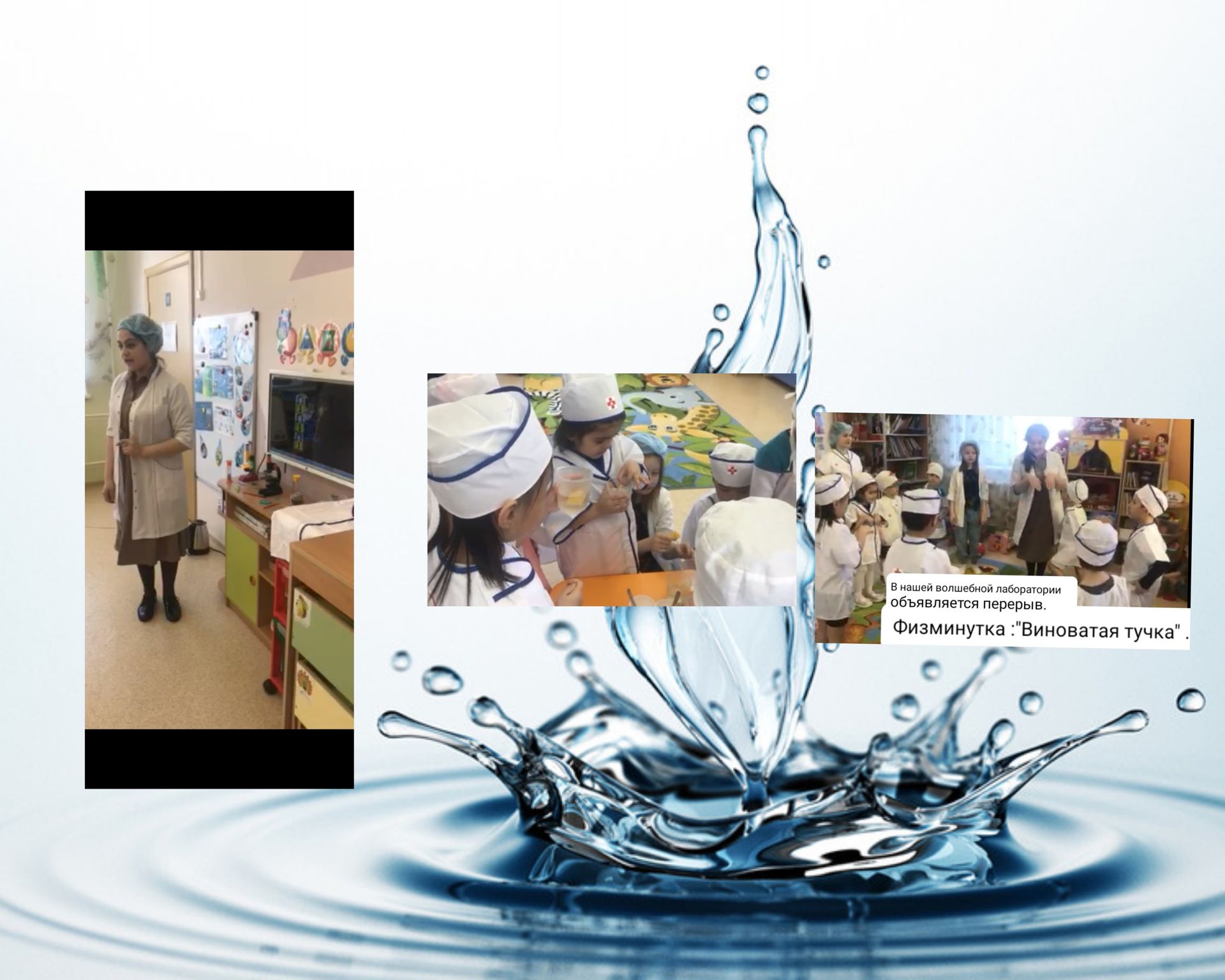 Весело и интересно провели выходной воспитанники детских садов нашего города. Мы говорили о воде, её пользе для людей, животных, растений. Посмотрели видео презентацию о том, где в природе мы можем увидеть воду, как она попадает к нам в дома, прочитали стихотворение о воде, послушали звуки воды, проводили веселые эксперименты. Чтобы убедиться в необходимости воды для растений, мы поливали всходы на нашем мини-огороде. Наши гости выразили желание прийти к нам на следующее мероприятие.