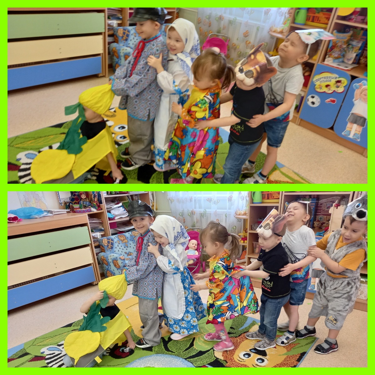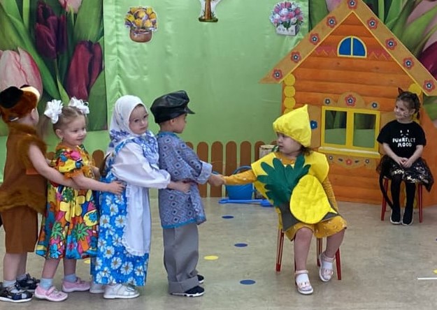 Гармоничное формирование личности ребёнка невозможно без раскрытия и развития его творческих способностей. Именно поэтому мы уделяем особое внимание театрализованной деятельности, которая помогает увидеть креативный потенциал каждого малыша. Наши педагоги с особой тщательностью подходят к выбору подходящих видов театрализованной деятельности. Воспитатели младшей группы «Снеговичок» Хубиева Индира Кемаловна и Конева Ольга Валерьевна поставили сказку «Репка». Артисты – их воспитанники. Малыши с удовольствием готовились к спектаклю: распределяли роли, подбирали нужные костюмы, заучивали текст, репетировали. Царила радостная, доброжелательная, творческая атмосфера.